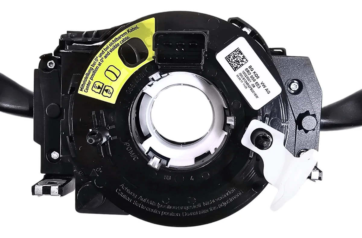 Este interruptor sirve para accionar el sistema de señales de giro (izquierda/derecha) así como controlar el limpiaparabrisas y, en algunos casos, el lavado del mismo. Además, la “cinta” (o reloj de muelle) integrada permite la conexión eléctrica del módulo de airbag del volante, preservando la continuidad del circuito incluso cuando el volante gira. Su correcta operación es crucial para: