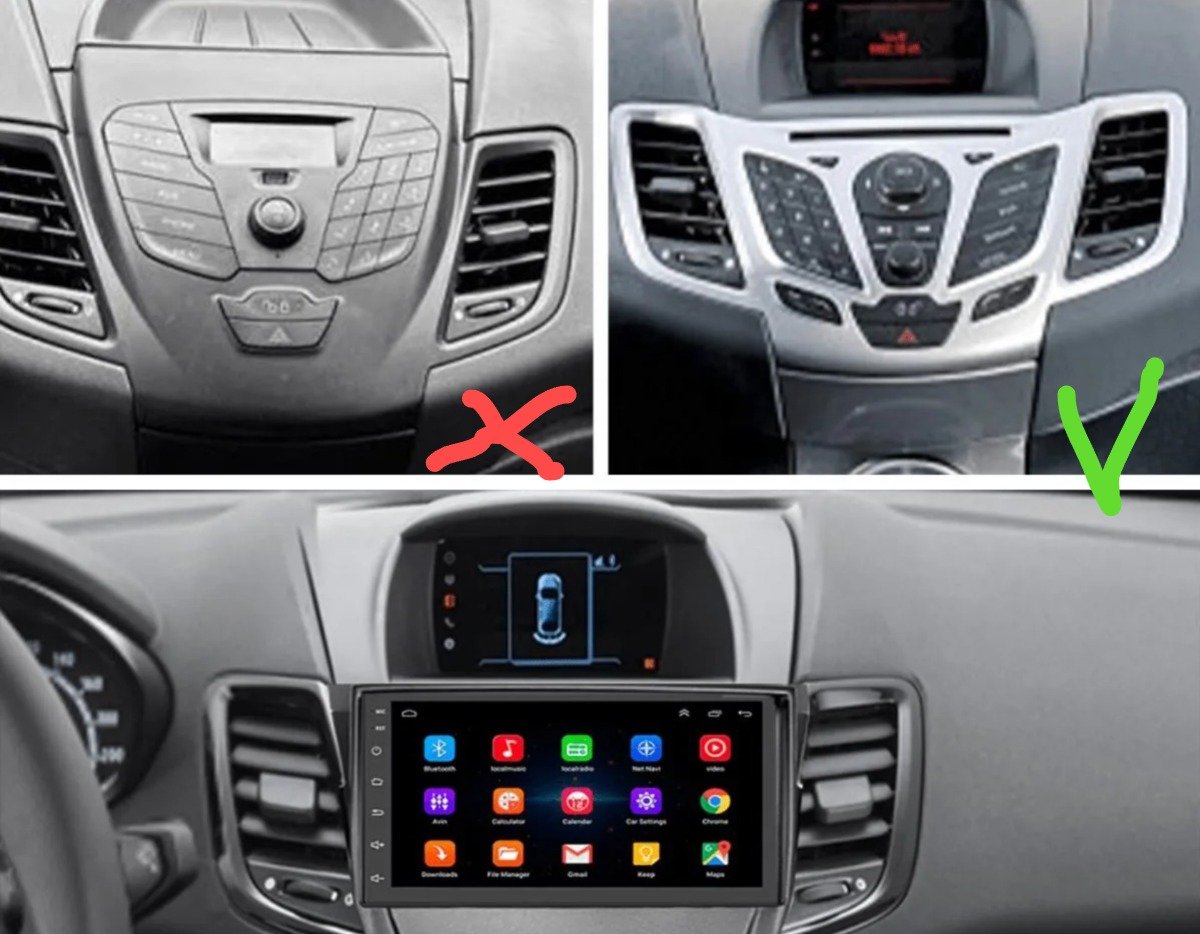 Moldura 2 DIN personalizada: Fabricada en ABS resistente, se adapta perfectamente al tablero de tu Fiesta sin necesidad de ajustes.