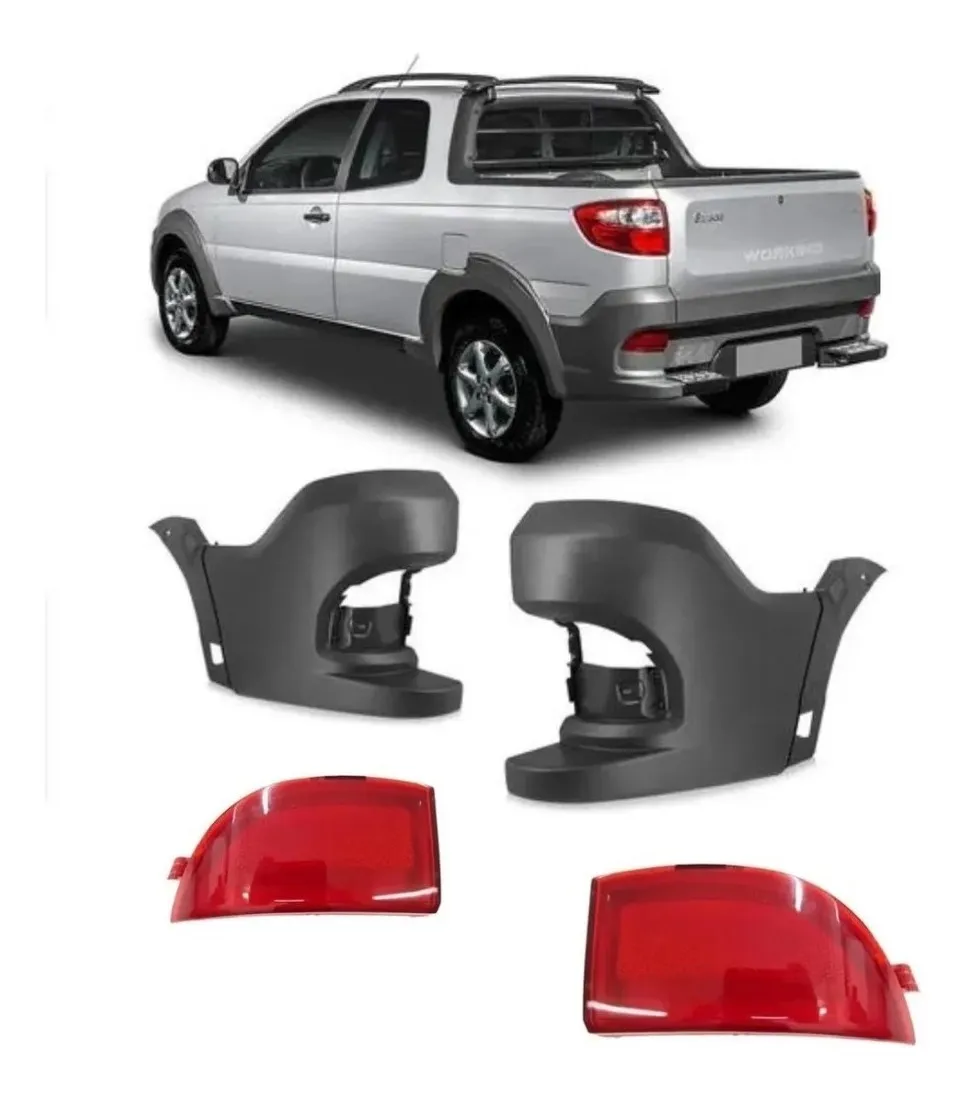 El par de polainas punteras con reflector para Fiat Strada 2014, 2015, 2016, 2017 y 2019 corresponde a las piezas plásticas que se instalan en la parte inferior/lateral del paragolpes trasero.